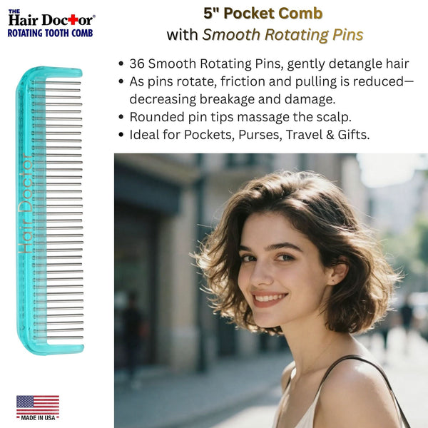 Hair Doctor Classic 5” Pocket Comb with Rotating Pins – Detangles Hair with Less friction and pulling, reducing damage Model TH516