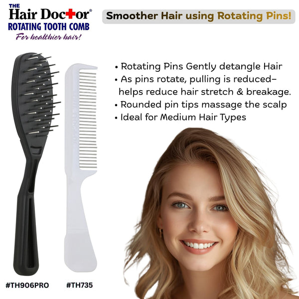 Hair Doctor rotating pin combs and brushes are gentle on hair, especially when wet. Many professionals recommend using rotating pin combs for daily detangling to reduce hair stress and minimize breakage.
