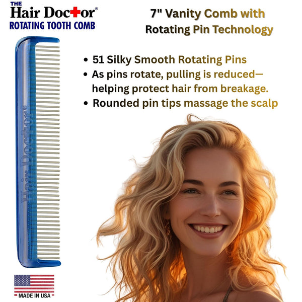 Made in USA. Manufactured and hand assembled at Steven Plastics Inc. Hoffman Estates, IL Original Hair Doctor has a collection of comb and brush sizes, styles and colors. Keep your hair healthier and beautiful with Rotating Pin Combs from Original Hair Doctor USA.