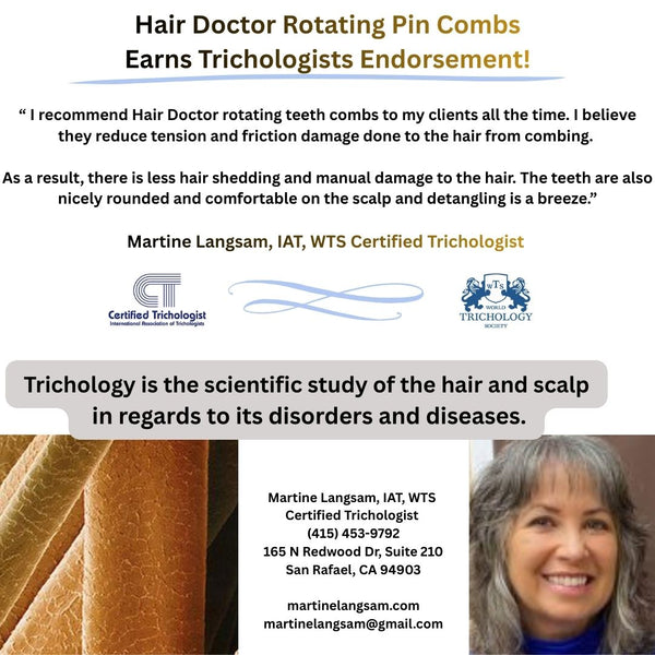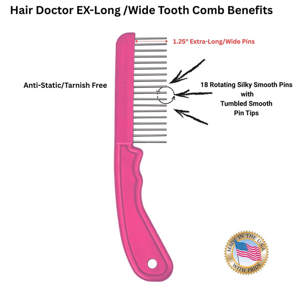 Hair Doctor Extra-Long/Wide Tooth Rotating Pin Comb- Model #THW818-Made in USA