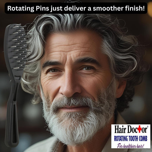 Rotating Pin Brushes are extremely gentle for detangling hair. Teeth move, and glide reducing stressful pulling on hair strands, reducing damage. The result is a comb that glides effortlessly through hair without scratching or damaging the hair or scalp.